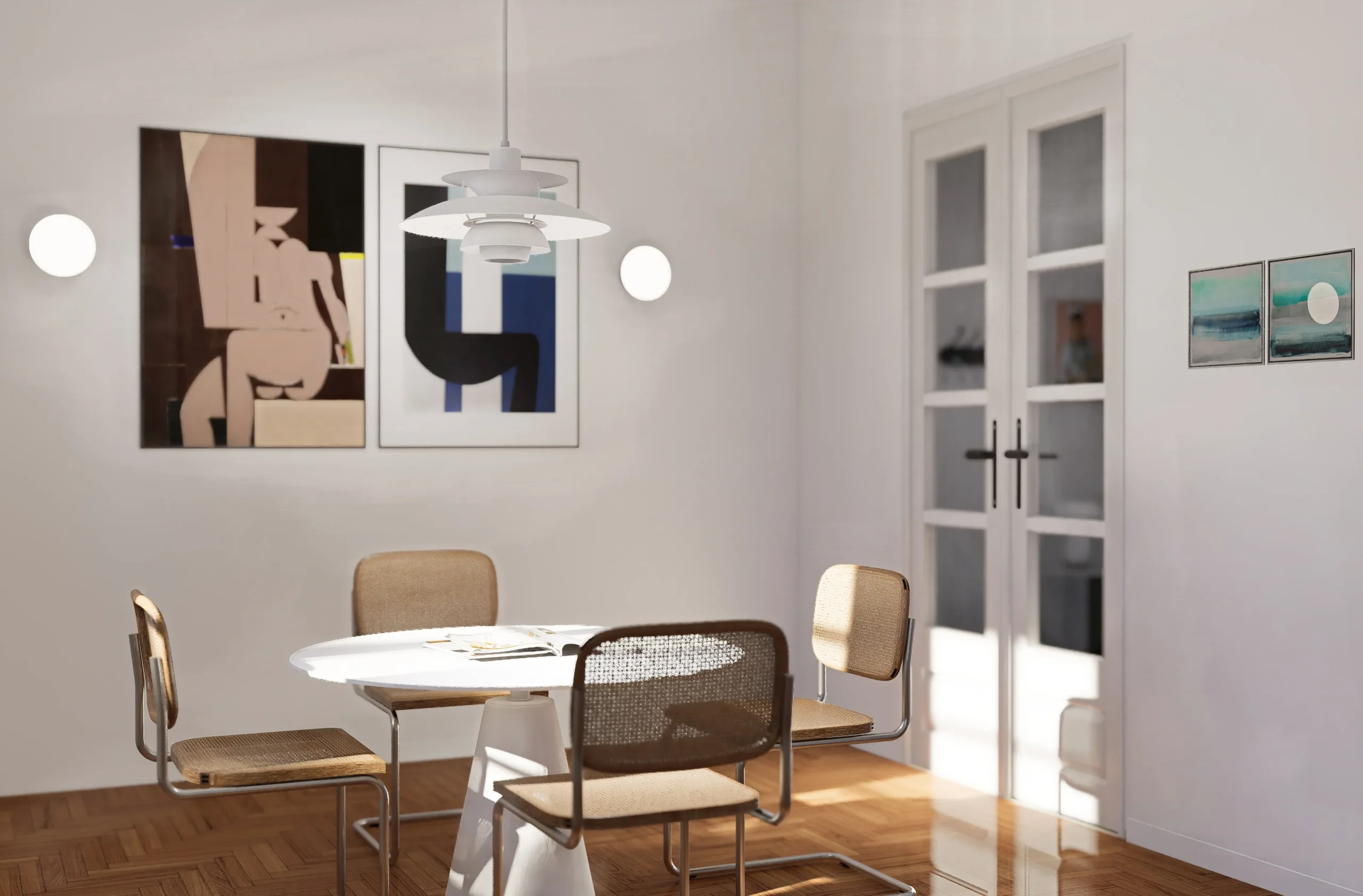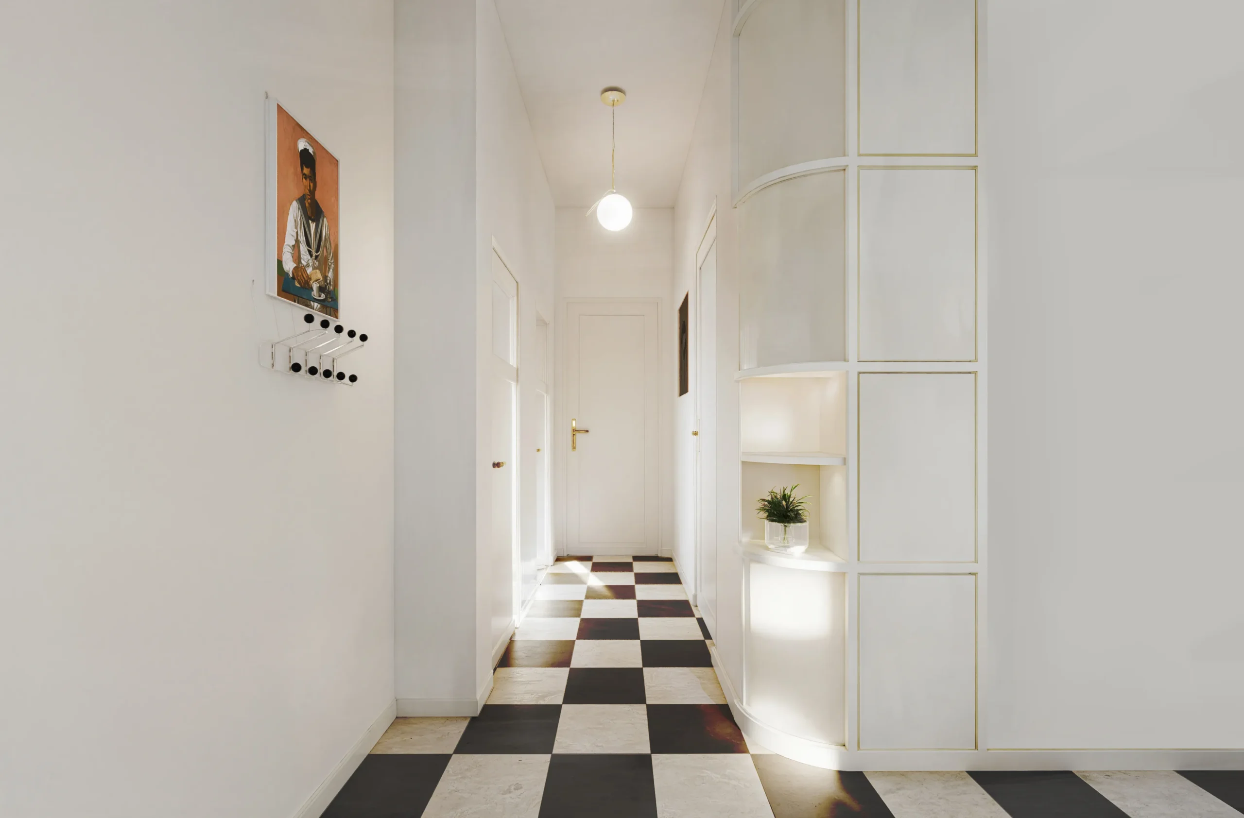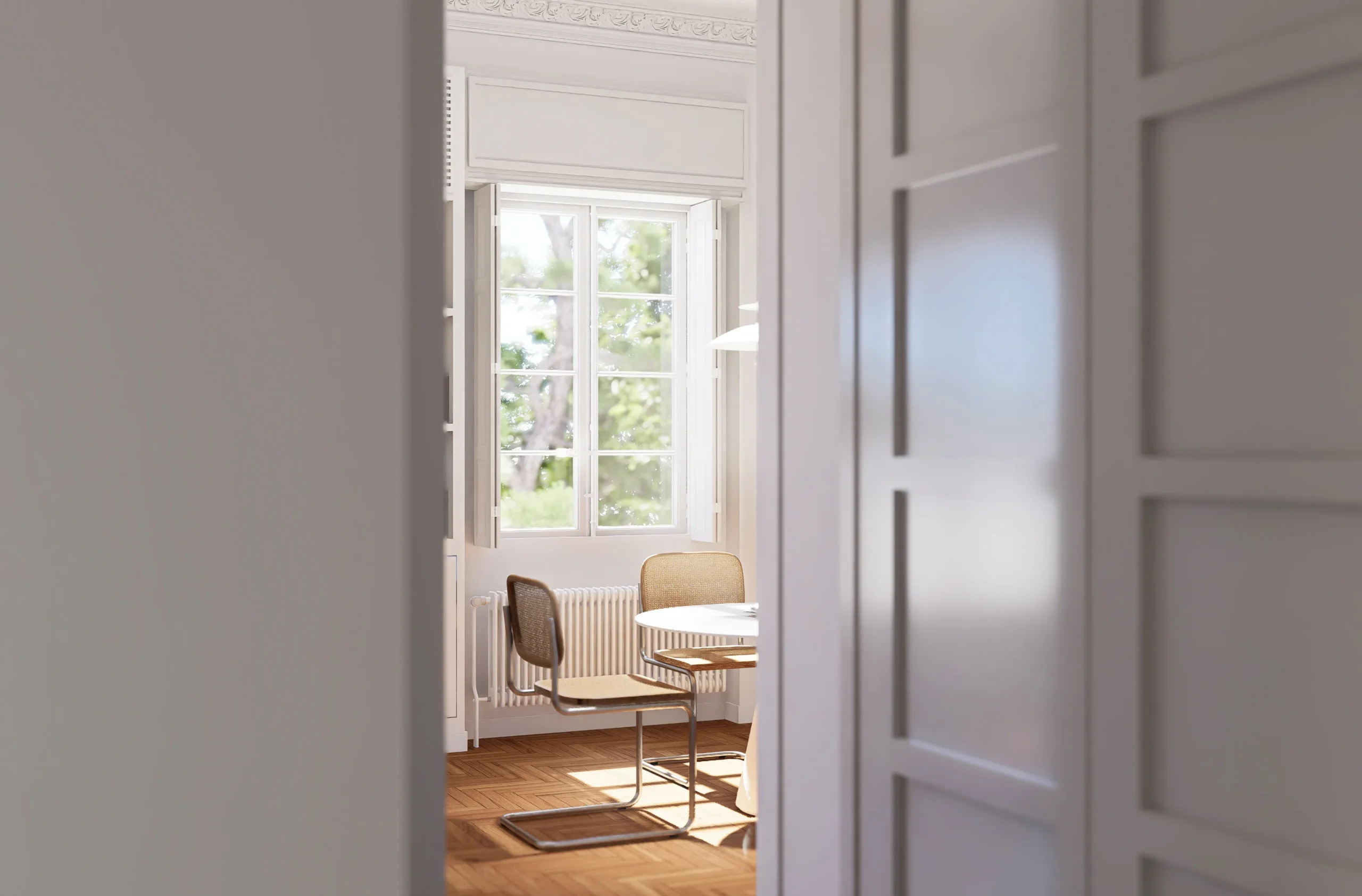The renovation is structured through a clear spatial hierarchy, a redefinition of circulation patterns and a reconfiguration of uses, while preserving the character of the apartment and reinforcing the relationship between private areas and shared living spaces.