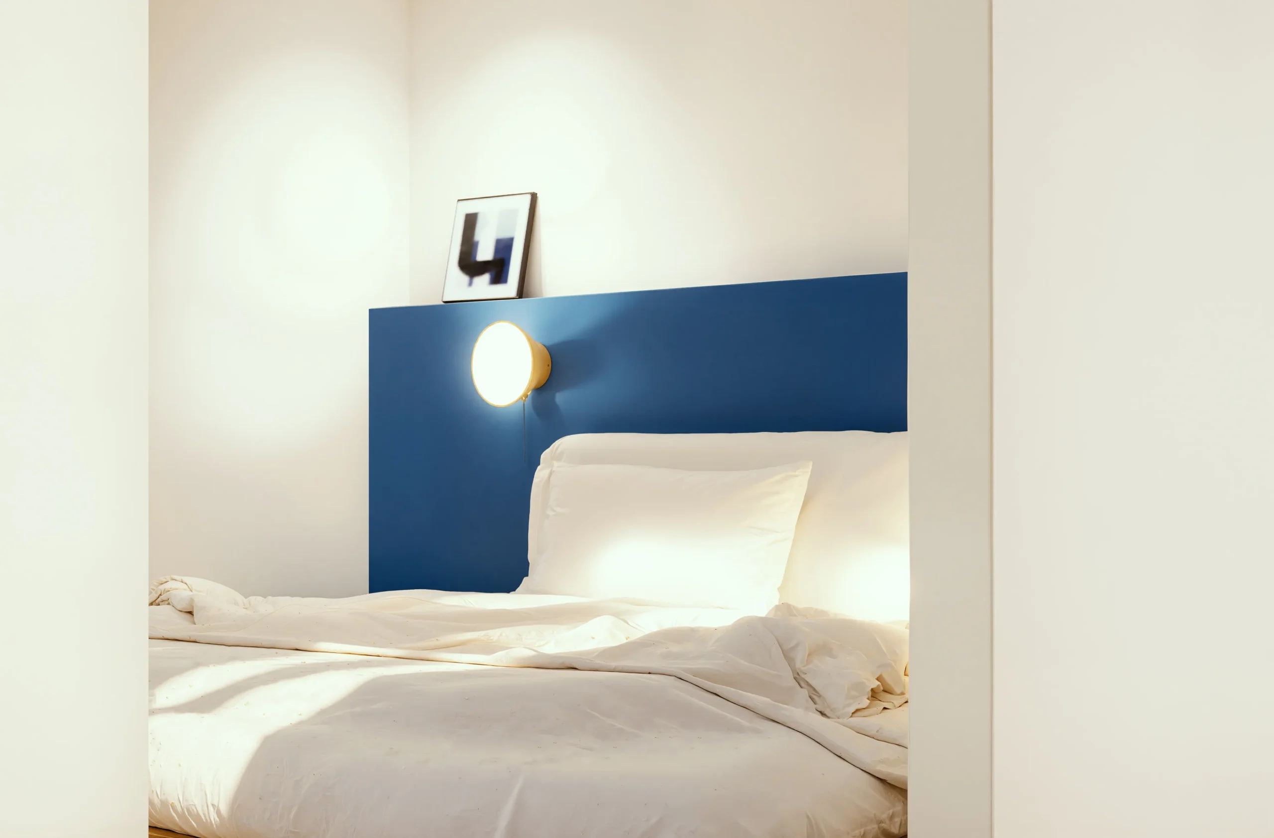 The bathrooms undergo complete renovation, maintaining a timeless character through restrained contrasts and subtle patterns. Material selections respond to modern functional requirements while respecting the quality and texture of the apartment’s original elements.