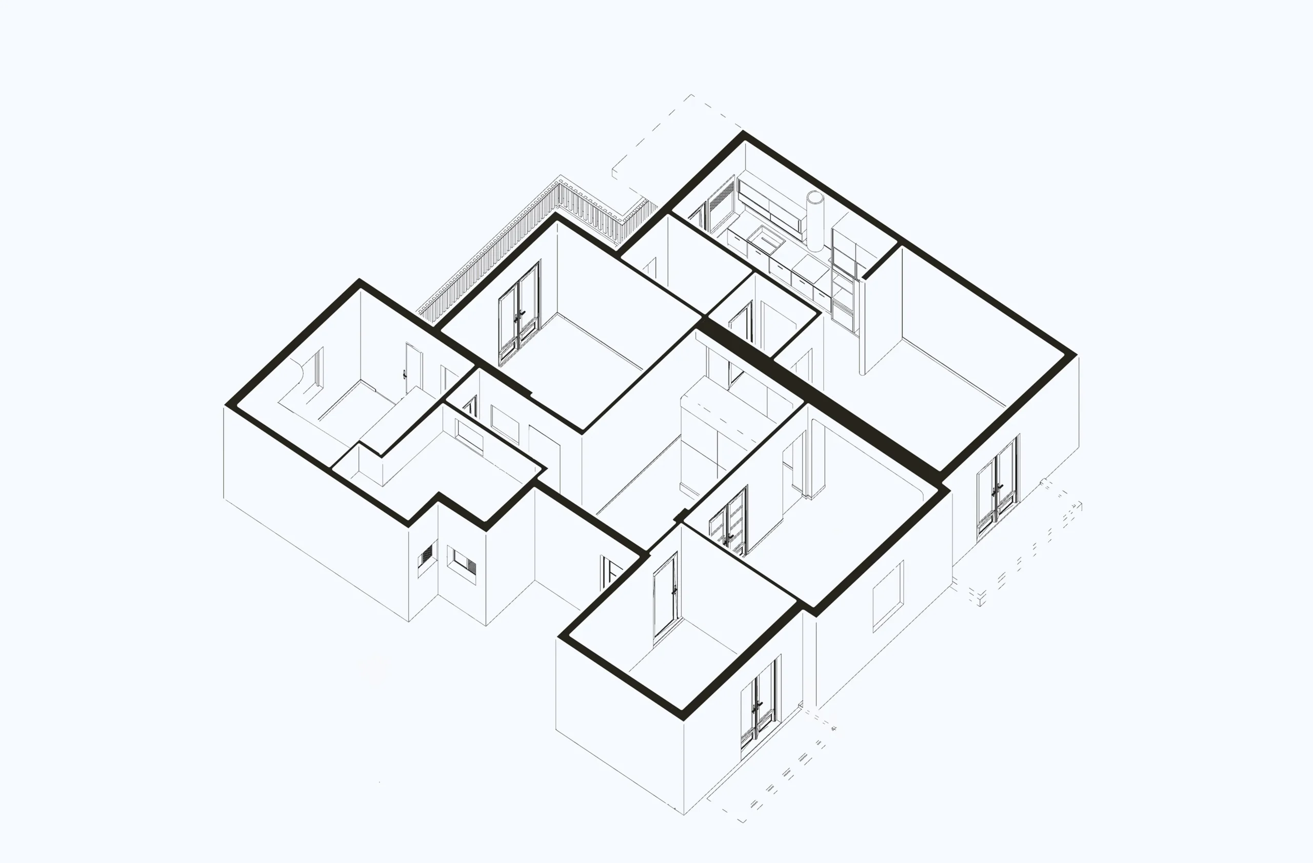 The existing condition provides a solid and valuable base for spatial redesign, respecting materials and proportions, and creating the conditions for a contemporary renovation that enhances everyday functionality and residential comfort.